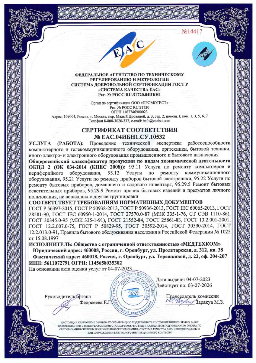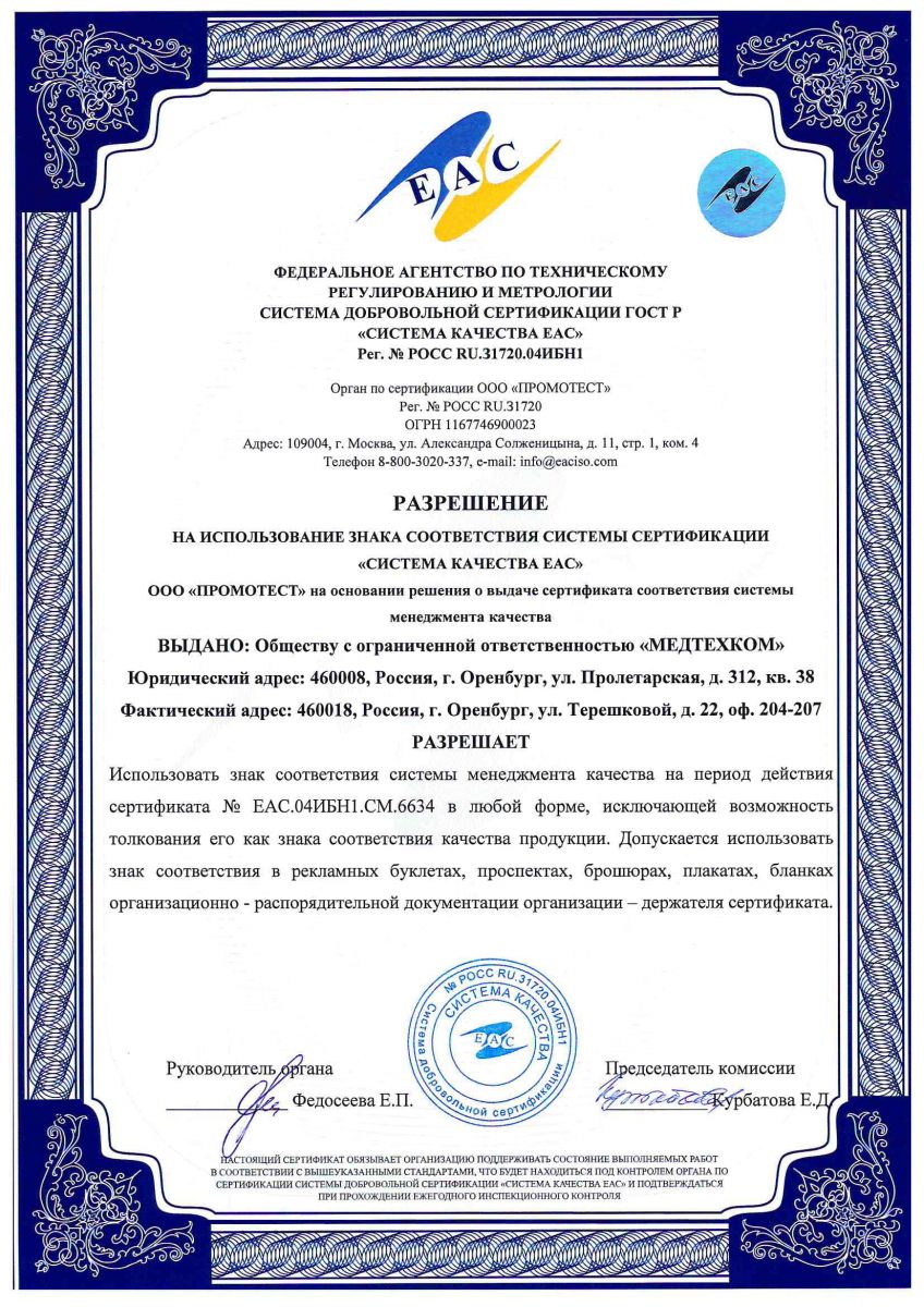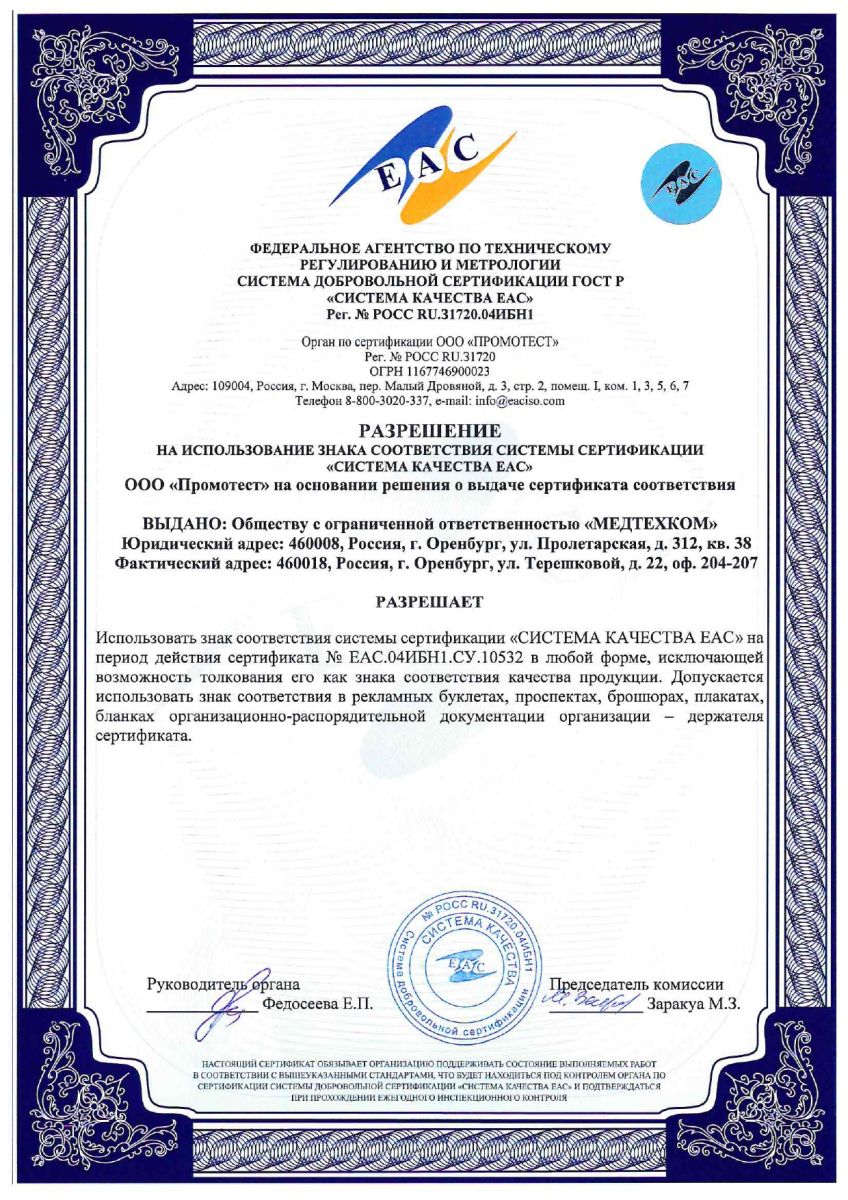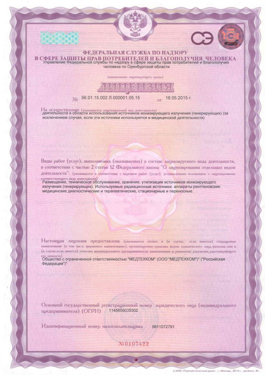 Лицензия № 56.01.15.002.Л.000001.05.15 от 18.05.2015г выдана Управлением Федеральной службы по надзору в сфере защиты прав потребителей и благополучия человека по Оренбургской области